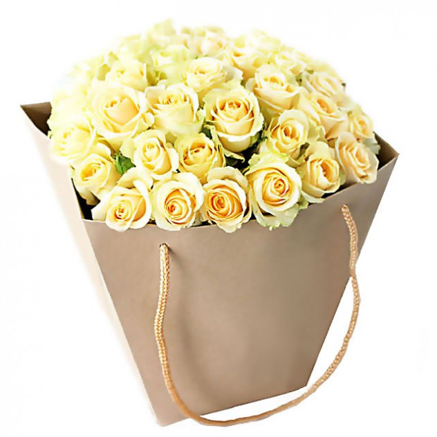 Состав: Белые розы 35шт., сумка крафт с ручками.