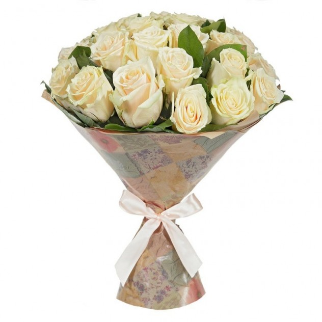 Обрадуйте своего любимого человека нашим букетом из 25 кремовых роз в крафте.