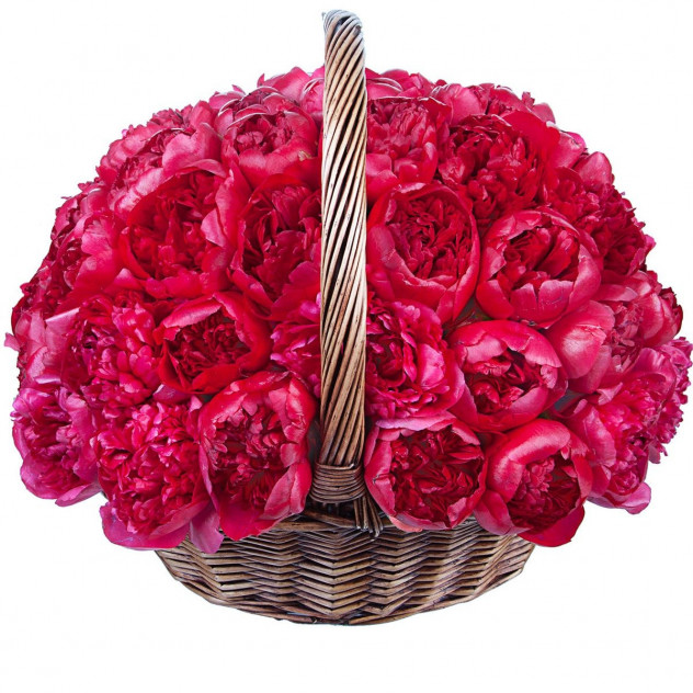 Упаковка (пленка с лентой), Пион 51шт., Корзина плетеная средняя